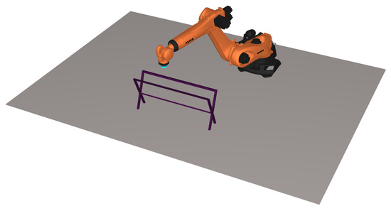 A robot grinding platform is established in the RoboDK simulation environment, as shown in