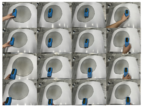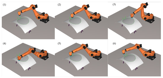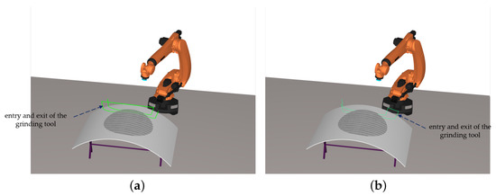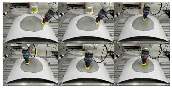Table 1. It can be seen that the time required for sanding based on the defective area algorithm is much less than that of the parallel sanding trajectory method and there is no need to enter and exit the tool and switch direction in the middle; thus, the sanding efficiency has been significantly improved.