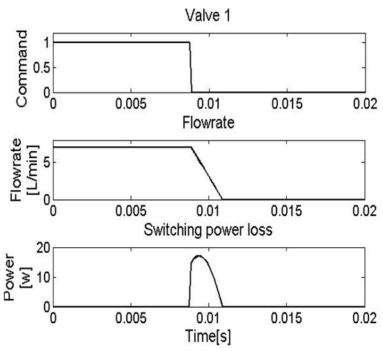 Switching power loss exists due to the pressure difference and flowrate during the switching-off process. Physical switching valves are not ideal ones which transfer directly from an ON state to an OFF state. Actually, the orifice of the valve is gradually closed until the valve is completely switched off.