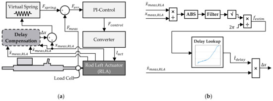 The second approach aims to reduce the phase delay between the rack displacement and the resulting contact force and is referred to as delay compensation (DC). Therefore, a similar basic principle, as in [22], is incorporated. To compensate for the resulting delay, the currently available reference signal is adapted so that the dynamic limitations of the PMLSMs and the overlying control structure are considered. Therefore, the following considerations are made exemplarily for a connected RLA.