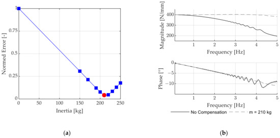 Within machining control applications, feedforward control approaches are exposed to changing boundary conditions, introduced by the workpiece characteristics, tool degradation and travel speed. Therefore, [11] implemented an adaptive feedforward control based on the reference position signal and the occurring error together with friction compensation to reduce the resulting position error. Approaches for inertia compensation by a feedforward control are even further restricted since the workpiece and direction of excitation vary over time. Consequently, [12] developed a velocity and AFC in combination with a jerk disturbance observer to compensate for varying inertia during the machining process. Similar approaches were conducted in [13,14,15], where observers and artificial intelligence are implemented to estimate the current inertia of the system.