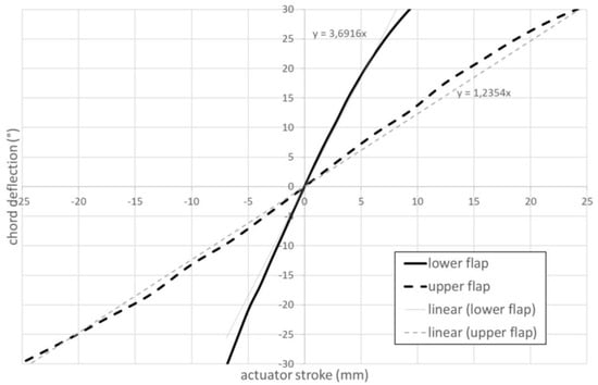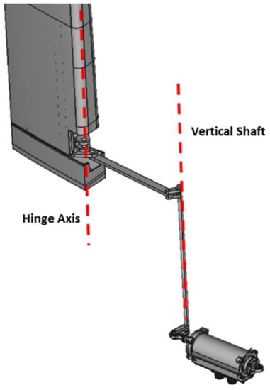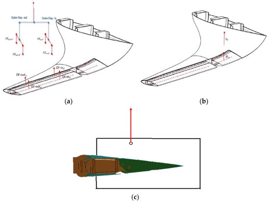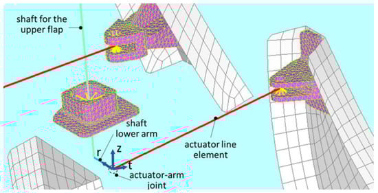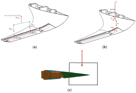 Figure 4). In this way, the total hinge moment is applied with respect to the main rotation axis (that of the entire flap), with the rotation inhibited by the kinematic chain of the flap control constrained by a rigid rod to replace the related actuator (