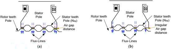 Stator/rotor tooth pole pitch. (a) Regular air gap distance. (b) Irregular air gap distance.