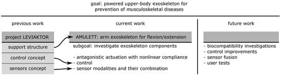 The general goal of our research, based on the results of project LEVIAKTOR (“LEVItation mittels AKTorik in ORthesen”; English: levitation via actuators in orthoses, BMBF 16SV8004), is to develop a powered upper-body exoskeleton for application in, e.g., industry and healthcare (