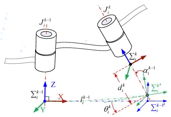 where denotes the transformation matrix that translates along the X-axis, denotes the transformation matrix that rotates around the X-axis, and so on [25]. , , , and denote the parameters of MDH. denotes the transformation matrix of the flexible deformation, and its expression is given in the literature [26].