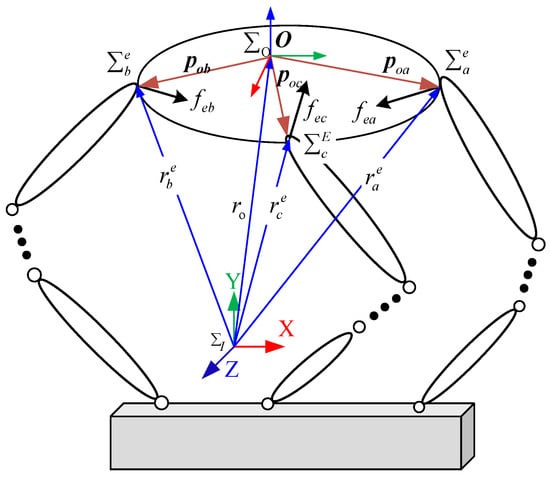 The diagonal elements in Equation (18) represent the mapping relationship between the modal velocity of each robotic arm and its corresponding end velocity. The off-diagonal elements of the matrix represent the mapping relationship between the modal velocity of an arm through the base to the end velocity of another arm, which is referred to as the inter-arm modal motion coupling relationship.