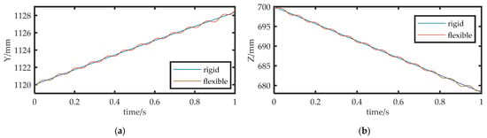 Position error: (a) the position error obtained using MATLAB; (b) the position error obtained using ADAMS.