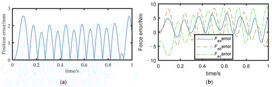Figure 15a shows the position error between the actual path of the rigid body and the desired path. The results show that the maximum position error before optimization was 2.5 mm (as shown in Figure 9), while the maximum error after optimization was 1.5 mm. The force error is shown in Figure 15b, with a maximum value of approximately 6 N, Comparing Experiments 1 and 2, it can be inferred that the method proposed in this paper could effectively improve the motion accuracy of the FMSR by 40% and improve the accuracy of the external force of the arms.