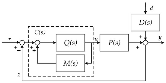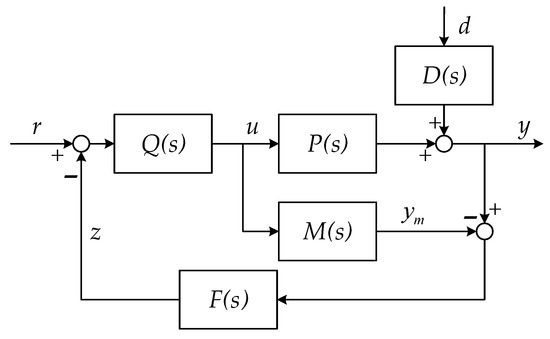 For the convenience of finding the input–output relationship, let , which can be equivalently transformed from Figure 1 to the classical feedback control form as shown in Figure 2.