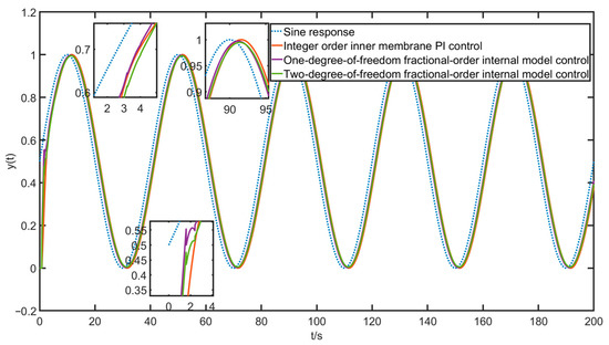 The sine wave experiment also shows that the oscillation of the two-degree-of-freedom fractional internal model control is well maintained and the error is also small.