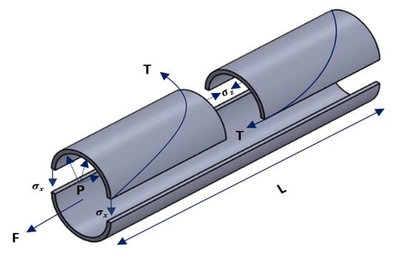 In this work, the force balance principle is employed to derive the preliminary force model [14,28], as proposed by Ferrasi et al. [45] and Kothera et al. [30]. Considering the free-body diagram of the PAM and the forces exerted on the actuator after providing an internal pressure as shown in Figure 3, the force equilibrium in the x and z directions yields: