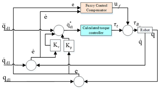 Feedforward control alone has difficulty resisting other unknown disturbances and the system stability is poor. Therefore, a fuzzy calculation torque feedback control is proposed to compensate for the motion error. The structure diagram of torque feedback control is shown in Figure 5.