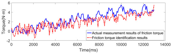 It can be seen from Figure 8 that the parameter identification result of the friction torque is close to the actual measured value, which is evaluated by the goodness of fit evaluation model in Ref. [15]. The goodness of fit is 0.9355, close to 1, which is good. Therefore, the parameter identification result of this model is relatively reliable.