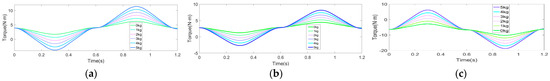 Feedforward compensation torque diagram of each drive joint under variable load: (a) Joint 1; (b) Joint 3; (c) Joint 5.