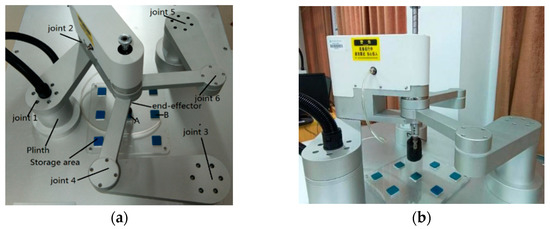 In the feedforward experiment of a 4-DOF redundant parallel robot under variable load, the loading weight is determined to be in the range of 0–5 kg, according to the rated load capacity of the driving motor. Therefore, loads of 0 kg, 1 kg, 2 kg, 3 kg, 4 kg, and 5 kg were applied to the end-effector, respectively. The field equipment and experimental figure are shown in Figure 9.