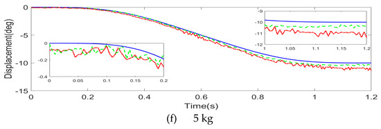 The single driving joint is operated according to the planned trajectory, and the trajectory tracking experiment is performed in Torque Mode based on the calculated torque and fuzzy control combined with feedback Refs. [11,22,23,24,25,26,27], supplemented by variable load disturbance and friction torque feedforward. The encoder was used to collect the angular displacement variation data under various load conditions, and the angular velocity, angular acceleration, and angular acceleration change rate were obtained through differential and filtering processing. According to the current data recorded by the driving software, the real-time situation of the joint torques in motion under various loads was calculated.