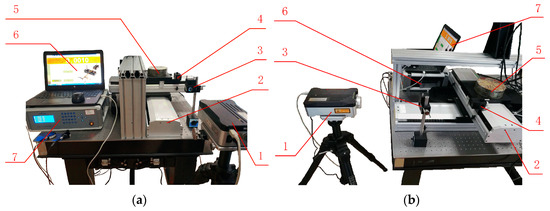 Experimental platform for the linear motor feeding system: (a) front view; (b) right view.