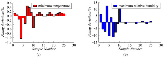 Fitting deviations: (a) minimum temperature; (b) maximum relative humidity; (c) maximum temperature of heater surface.