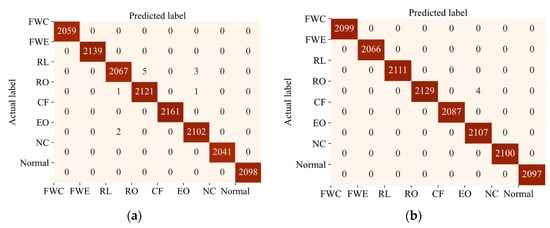 - On the ASHRAE 1043-RP dataset, the diagnostic accuracy at level 1 is enhanced from 99.94% to 99.98% compared to the original dataset. Similarly, on the simulation dataset, the diagnostic accuracy at level 1 is improved from 99.93% to 99.96% compared to the original dataset. This method outperforms other research methods in terms of diagnostic accuracy for all faults except for RO and EO faults, which have a slightly lower accuracy rate of 0.06% and 0.02%, respectively, compared to other methods. The overall accuracy rate of this method is as high as 99.98%.