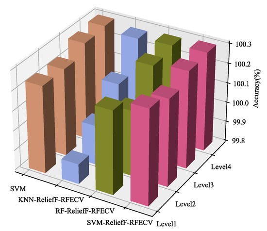 | SVM-ReliefF-RFECV | 99.96 | 99.96 | 483.29 | 99.96 | 99.96 | 410.04 | 99.96 | 99.96 | 372.12 | 99.93 | 99.93 | 353.36 |