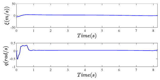 The time responses of the intercept strategy ξ and pitch angle rate q in scenario 1.