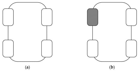 As shown in Figure 6, the failure mode of the drive motor can be divided into six types: no failure, single-motor failure, double-motor failure on different axles and sides, double-motor failure on the same axle, double-motor failure on the same side, and multiple-motor failure. The analysis of the six failure modes is as follows: