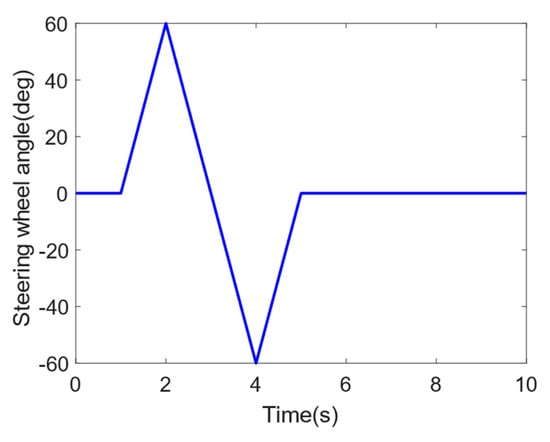 The steering wheel angle in the single-lane-shift condition is shown in Figure 13:
