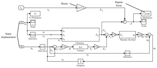 The simulation model is constructed using the dynamic model of the planetary flywheel inerter actuator shown in Figure 5.