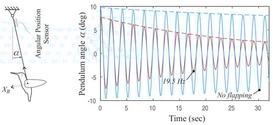 where the constant K is a linear function of the flapping frequency. u is the axial velocity and q is the pitch angular velocity. This model was validated with a set of pendulum experiments (Figure 3) [1,26].