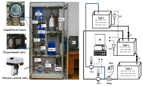 This part uses the water tank system shown in Figure 6 as the experimental object, which is a commonly used process control device in industrial production. The deep learning models are established using the data-driven modeling approach, and the predictive controllers are designed based on the model’s distinctive structure for real-time control comparative experiments on water tank systems.