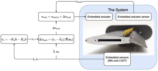 In Section 3, we validate the performance of the INDI method for gust load alleviation and active flutter suppression challenges. It is noteworthy that this single controller can solve both issues without changing the control architecture or the control gains. A control and block diagram is presented in Figure 2.