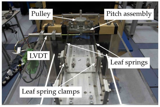Wind tunnel testing was performed at the low-speed W-tunnel at Delft University of Technology, which is an open-circuit blow-down tunnel with a 0.4 m × 0.4 m test section, with low turbulence levels and a maximum attainable speed of 35 m/s. Attached to the wind tunnel is a gust generator capable of generating sinusoidal and cosine gust excitations with gust frequencies ranging from 0.5 Hz to 12 Hz in 0.5 Hz increments []. The aeroelastic apparatus in the wind tunnel is shown in Figure 3.