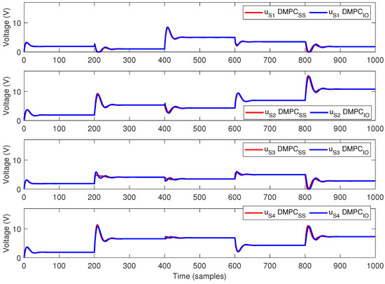 In all tests, for each sub-system, the control action is obtained using the gain feedback matrix formulation obtained as an optimal solution that minimizes the difference between the DMPC algorithm and the feedback gain matrix solution.