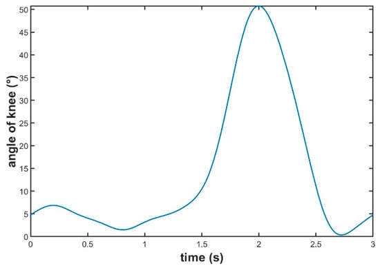 The roped-driven lower limb rehabilitation robot studied in this paper makes the legs of patients move periodically and reciprocally by imitating the walking gait of normal human beings through the traction coupled with the rope. Therefore, we set the expected position trajectory of the active joint for periodic motion, expected velocity trajectory , and the expected acceleration trajectory .