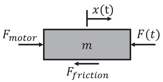 Here, x is the linear travel distance measured by the motor encoder and transmission geometry, m is the reflected inertia of all actuated parts of the linear actuator, is the Coulomb friction coefficient, is the viscous friction constant, is the motor constant, and u is the control input for the motor driver.
