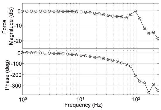 Frequency response of the linear actuator with a reference force magnitude of 50 N.