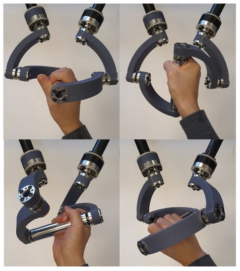 - Hulin, T.; Hertkorn, K.; Kermer, P.; Schatzle, S.; Artigas, J.; Sagardia, M.; Zacharias, F.; Preusche, C. The dlr bimanual haptic device with optimized workspace. In Proceedings of the IEEE International Conference on Robots and Automation (ICRA), Shanghai, China, 9–13 May 2011; pp. 3441–3442. [Google Scholar]