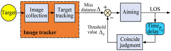 - Time-delay : It tracks the target according to the miss-distance Δ at a certain time in the future. The image tracker has a signal time-delay between coinciding time and shooting time . The LOS is still shaky within the time-delay . When studying the small deviation of the image tracker at time , the time-delay should be added. In Equation (2), the small deviation generated at time is corrected to reduce the adverse impact of time-delay on EODS firing.