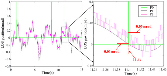 As shown in Figure 9, the black curve P1 represents the LOS’s true value. The red curve P2 represents the LOS’s predicted value. The green curve P0 represents the LOS’s firing judgment threshold. The green curve represents the optimized design method proposed in this paper.