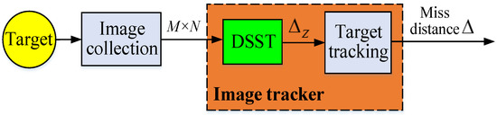 The precondition for the correct implementation of an LOS firing controller model is that the image tracker stably outputs the miss-distance Δ signal. In Figure 10, the tracker time-delay can be compensated via filter prediction. However, once the miss-distance Δ is lost in the tracking and aiming process, the LOS firing controller cannot be implemented. This will lead to a decrease in the tracking precision of the EODS. As shown in Figure 10, the basic principle of the optimized image tracker is to obtain a resolution coordinate position DSST filter through image processing. Then, the DSST filter stably outputs the pixel coordinate position of the target in the next frame.