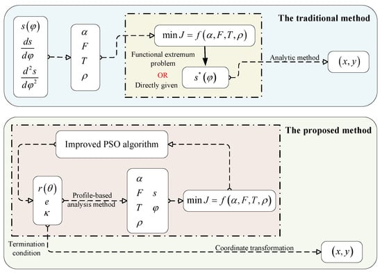 The block diagram of the cam design method proposed in this article and traditional thinking.