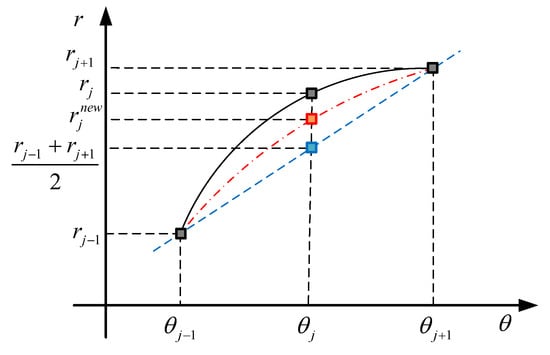 Secondly, we used the spline curve to approximate the theoretical optimal profile. A sufficient number of key points are interpolated with the cubic spline curve, and the profile of any shape can be approximated with sufficient accuracy theoretically. Here, it is necessary to determine the number of key points N. Theoretically, the greater the number of key points is, the higher the accuracy of curve approximation will be, but the calculation cost will increase accordingly. More importantly, each key point cannot be completely independent. For a profile, the polar radius of adjacent key points often needs to be smooth and continuous, and the relations inside the particles will greatly affect the fitness of the particles. When the number of particles is too large, the internal freedom of the particles is too great, resulting in a very slow process of convergence to the optimal profile. To deal with this problem and improve the efficiency of the algorithm, in Section 3.3.4, this study will put forward a correction algorithm for the particle itself as an improvement to the PSO algorithm.
