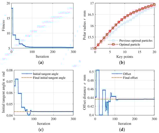However, the process of PSO involves a large amount of randomness, and different initial values also have a certain impact on the algorithm’s results, resulting in inconsistent final iteration results, and the optimality of the solution cannot be theoretically proven. However, the results are sufficient to prove that the application performance of cam mechanisms on EMBs can be improved by designing different profiles.