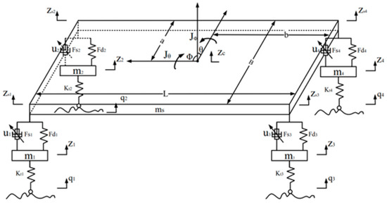 According to Newton’s second law, the dynamic equation of the mass on the vehicle spring is as follows: