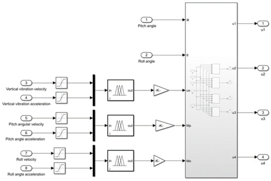 Based on the designed suspension control strategy, the suspension control module was established in Simulink, as shown in Figure 7.