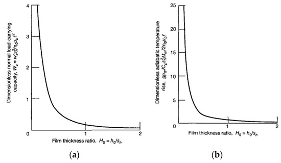 (a) Dimensionless carrying-load force, (b) dimensionless centre of pressure, versus H0 (Source: Hamrock et al. [22]).