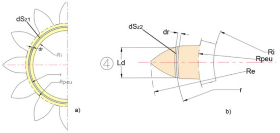 where Rpeu is the gear foot radius and Ri is the shaft radius. Integrating it,