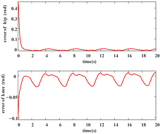 is the actual tracked angle vector for the exoskeleton’s hip and knee joints. Therefore, the error of the system is given by: