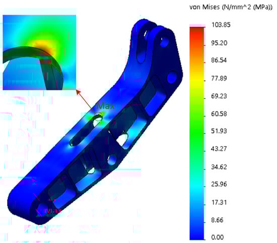 Stress cloud of first arm under handling conditions.