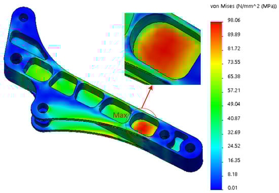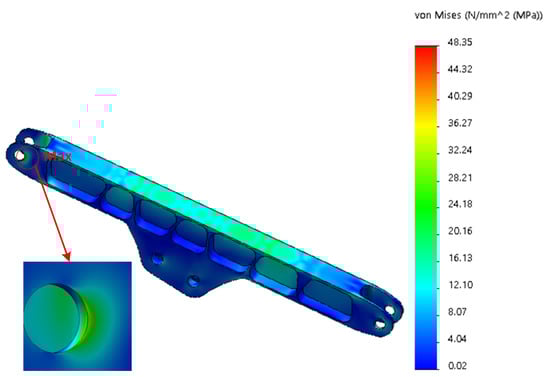 Stress cloud of third arm under handling conditions.